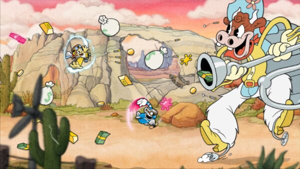 Chodźcie wszyscy, chodźcie i zobaczcie ten ponadczasowy, interaktywny spektakl! Przedstawiamy… niesamowitą, absolutnie kreskówkową, nadgrę Cuphead!! W tej grze akcji w klasycznym stylu możecie grać jako Kubek lub Filiżek (w trybie jednoosobowym lub trybie współpracy w sieci lokalnej), przemierzać przedziwne światy, zdobywać nowe bronie, uczyć się potężnych superciosów i odkrywać niespodzianki, starając się spłacić dług zaciągnięty u diabła!