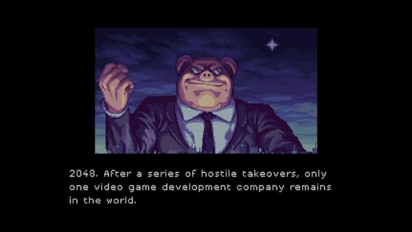 Jako zbuntowany szop na towarzyszącym ci wierzchowcu-lamie, będziesz eksplorował surrealistyczne, przypominające zamek biuro pełne wrogów, wyzwań, sekretów i korporacyjnych świń.