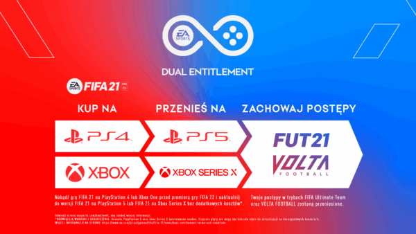 ZAKTUALIZUJ GRĘ FIFA 21 DO WERSJI NA PS5 LUB XBOX SERIES X BEZ ŻADNYCH DODATKOWYCH KOSZTÓW (szczegóły na https://www.ea.com/pl-pl/games/fifa/fifa-21/news/fifa-21-dual-entitlement-info-faq)